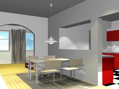2 the new kitchen communicates with the dining area through an opening in the dividing wall and open doorway